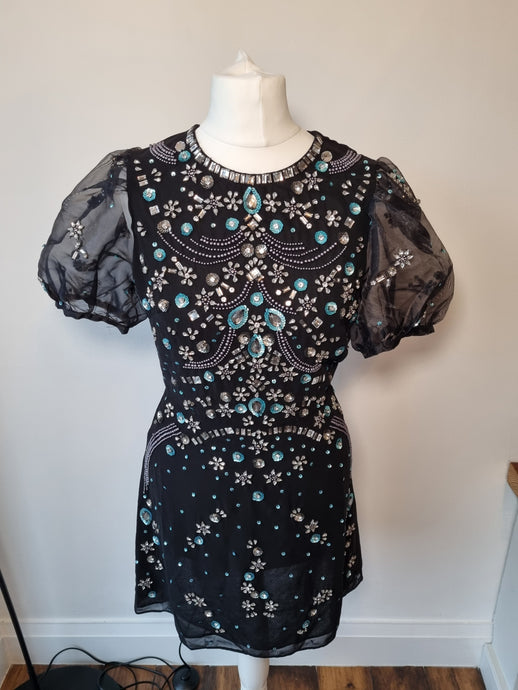 Coast Sequin Embellished Tulle Capped Sleeve Dress 8