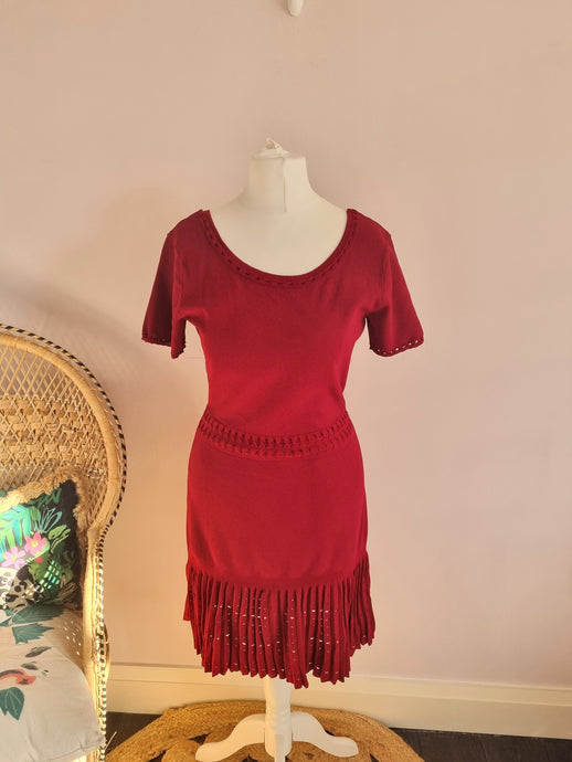 Sandro Paris Red Light Weight Knitted & Pleated Red Dress Size 2