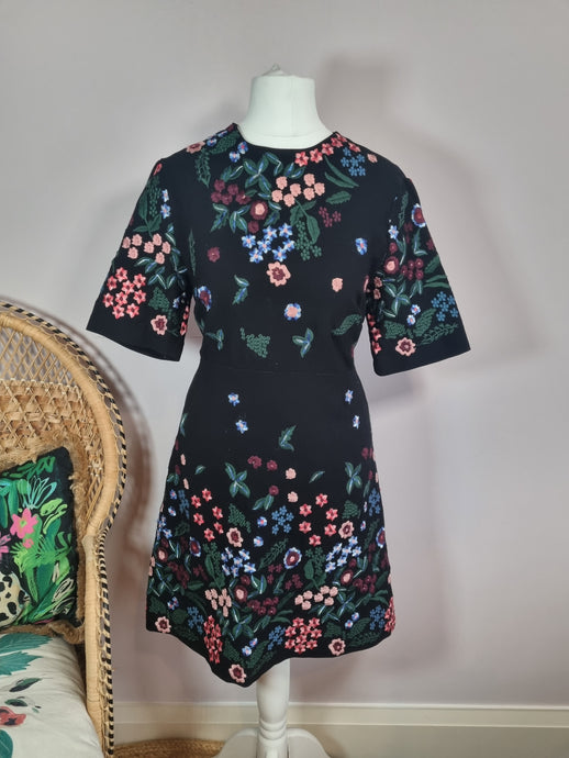 Zara Women Embroidered Floral Black Dress S